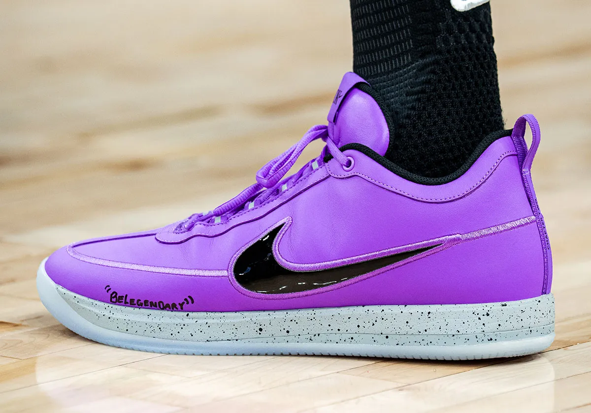 Edisi “Be Legendary” ini membawa warisan tersebut ke level berikutnya. Sepatu tampil dengan dominasi warna lilac yang lembut, dipadukan dengan Swoosh hitam glossy yang kontras. Midsole diberi sentuhan speckled khas cement, menambah detail visual tanpa menghilangkan kesan clean secara keseluruhan.